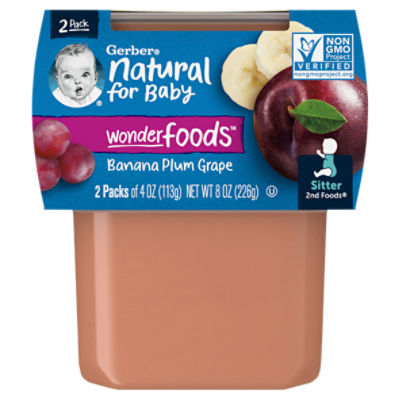 Amazon Com Gerber Baby Food 2nd Foods Blends Banana Plum Grape Puree Wonderfoods Natural Non Gmo 4 Ounce 2 Pack Pack Of 8 Baby